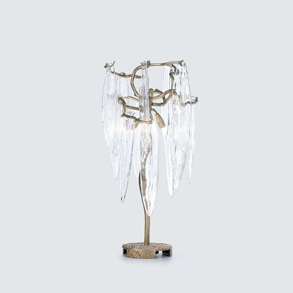 Весь светильник выполнен из маталла бронзового цвета, который дополняется подвесками из прозрачного стекла. Благодаря такой конструкции, он напоминает кристальную воду, падающую с дерева.