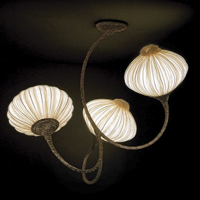 Люстра с артикулом 3 от фабрики Aqua Creations из коллекции Palm. Светильник сделан в современном стиле: вручную гнутые металлические трубки, обтанутые темно-бронзовой органзой, поддерживают три абажура, формой напоминающих физалис. Вы можете купить светильник в нашем интернет-магазине DecoShop по лучше цене.