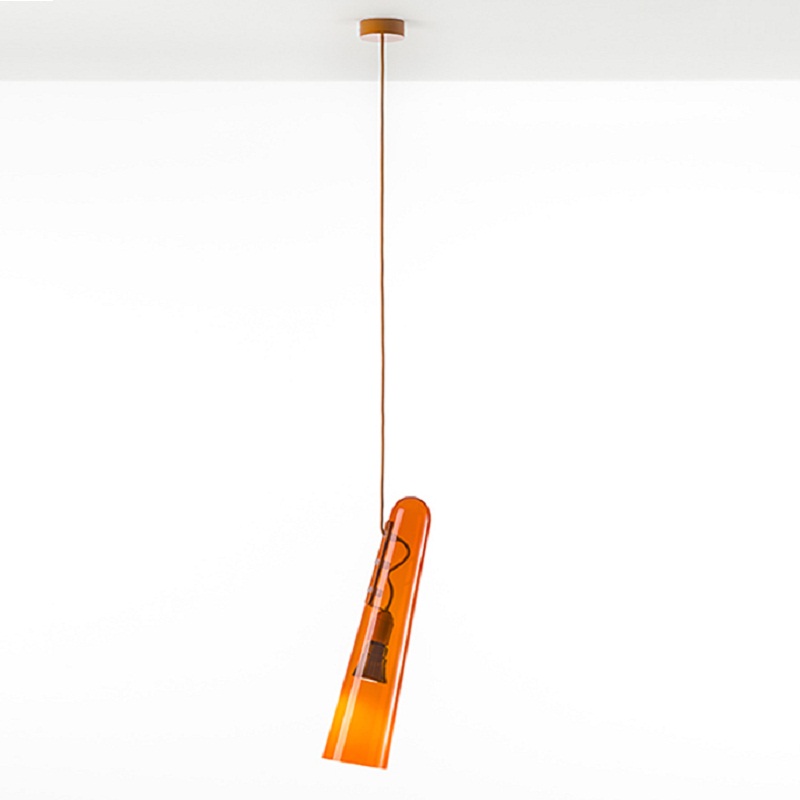 Подвесной светильник с артикулом PC956 от фабрики Brokis из коллекции FLUTES. Светильник изготовлен в современном стиле: продолговатый стеклянный плафон оранжевого цвета крепитсяк припотолочному основанию с помощью каната. Вы можете купить светильник в нашем интернет-магазине DecoShop по лучше цене.