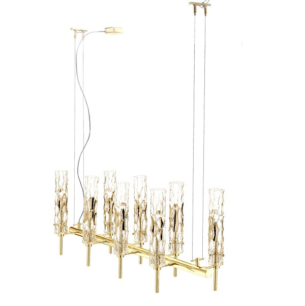 Подвесной светильник IDL Luce da Vivere Bamboo 496/8 в современном стиле из Италии. Металлическое основание доступно в отделках: хром, золото 24К, сатинированный чёрный никель. Плафоны из муранского стекла доступны в 2 вариантах: прозрачные и прозрачные с хромированными либо золотыми вставками.