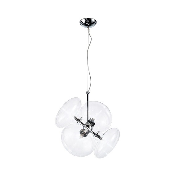 Подвесной светильник IDL Moira 366/4S в современном стиле из Италии. Корпус доступен в отделках: хром, матовый чёрный никель, чёрный никель. Плафоны из стекла доступны в 2 вариантах: все прозрачные либо комбинации из жёлтого, зелёного, янтарного и прозрачного .