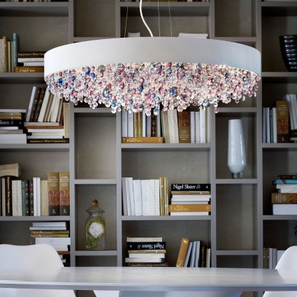 Подвес Masiero OLA S6 90 в современном стиле из Италии. Основание из окрашенного металла доступно в 9 отделках: белый, бронза, золото, красный, латунь, медь, серебро, синий, чёрный. Подвески из разноцветного стекла.