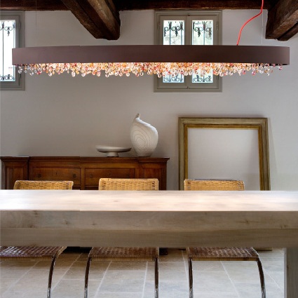Подвес Masiero OLA S6 OV 160 в современном стиле из Италии. Основание из окрашенного металла доступно в 9 отделках: белый, бронза, золото, красный, латунь, медь, серебро, синий, чёрный. Подвески из разноцветного стекла.