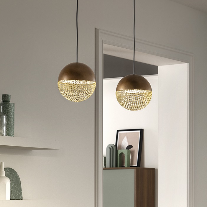 Подвесной светильник Masiero Iglu S2 - это интуиция, рожденная из наблюдения за совершенством сферы, преобразованная в совершенную, узнаваемую и уникальную форму сетки, которая, вместо того, чтобы препятствовать, создает узор света и тени, превращая металл в светящийся драгоценный камень.