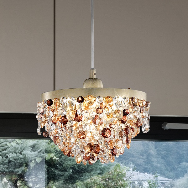 Подвесной светильник Masiero Rosemery 1 в неоклассическом стиле из Италии. Металлическое основание с подвесками из цветного стекла.