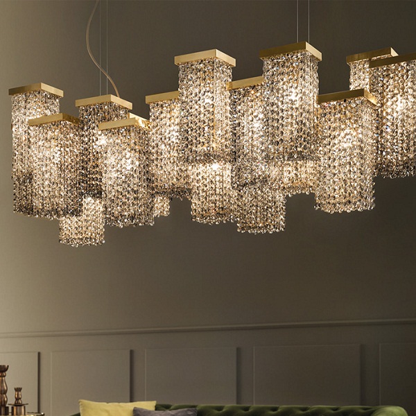 Подвесной светильник Masiero Skyline S20 в современном стиле из Италии. Название серии переводится как «линия горизонта». Металлическое основание латунного цвета дополнено хрустальными плафонами дымчатого цвета.