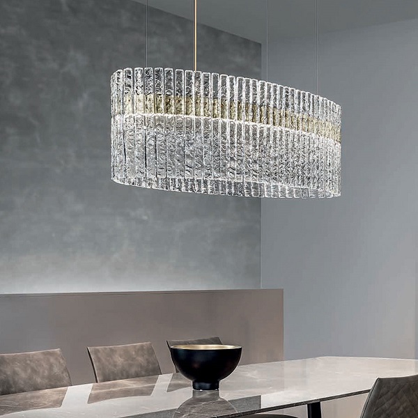 Подвесной светильник Masiero Vegas S OV 120 в современном стиле из Италии. Основание из окрашенного металла, а рассеиватель из стекла с имитацией горного хрусталя.