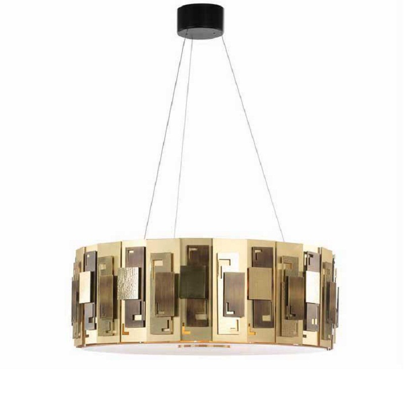 Подвес Officina Luce Glam 750-BB-07 в современном стиле. Цилиндричный золотой абажур дополнен медными пластинками разного размера, которые декорированы перфорацией. Вы можете купить светильник в нашем интернет-магазине DecoShop по лучшей цене.