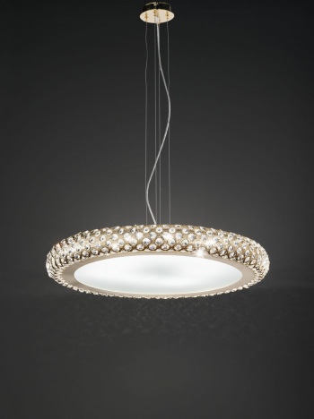 Подвесной светильник Renzo del Ventisette Contemporaneo L 14464/8SWA OZ в современном стиле из Италии. Широкое позолоченное кольцо, инкрустировано Swarovski. Вы можете купить светильник в нашем интернет-магазине DecoShop по лучшей цене.