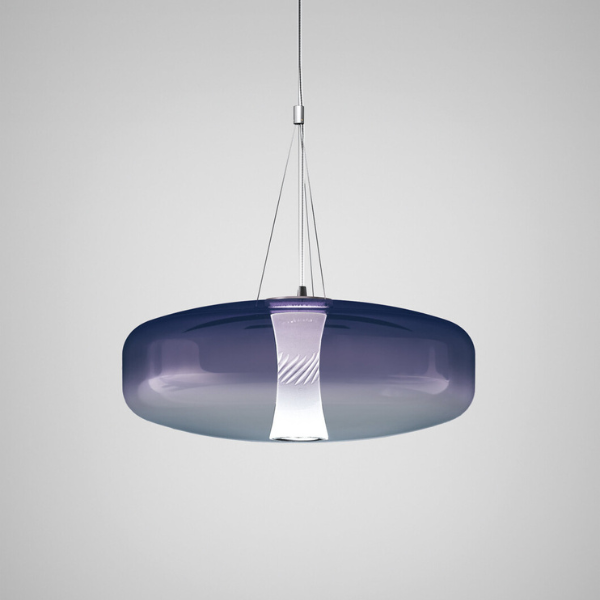 Подвес Solene из выдувного стекла доступен в следующих цветах: голубо-фиалковый и золотистый. Коллекция Solene включает: подвесные светильники, настенные светильники, настольные лампы.