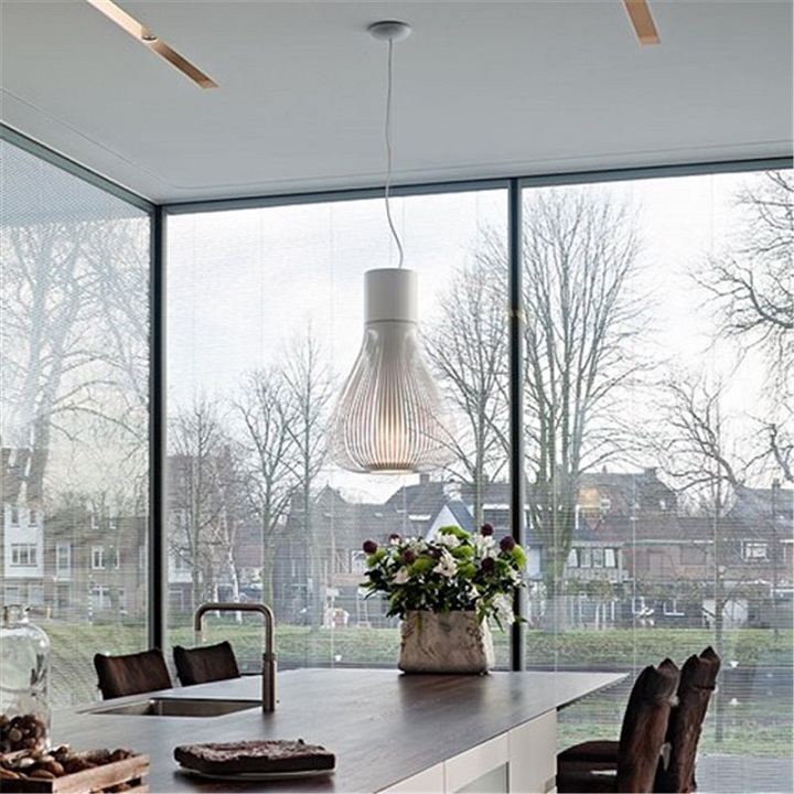 Подвес Flos Chasen F1636009 в современном стиле из Италии. Подвес, обеспечивающий рассеянное освещение. Корпус из нержавеющей стали с фотохимическим покрытием и боросиликатный диффузор. Защита жидкой краски. Литой под давлением алюминиевый фундамент, 30% армированный стекловолокном потолок из полиамида, прикрепленный к прессованной и оцинкованной стальной потолочной арматуре. В этой версии излучение света можно отрегулировать с помощью механического движения, которое открывает жалюзи, тем самым изменяя форму светильника. Стальной подвесной кабель, шнур питания FEP / PVC того же цвета, что и светильник.