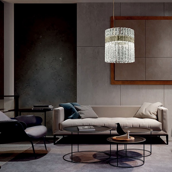 Подвесной светильник Masiero Vegas S RD 40 в современном стиле из Италии. Основание из окрашенного металла, а рассеиватель из стекла с имитацией горного хрусталя.