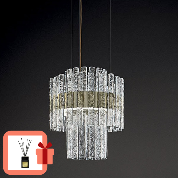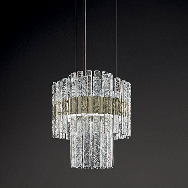 Подвесной светильник Masiero Vegas S RD 60 DB в современном стиле из Италии. Основание из окрашенного металла, а рассеиватель из стекла с имитацией горного хрусталя.