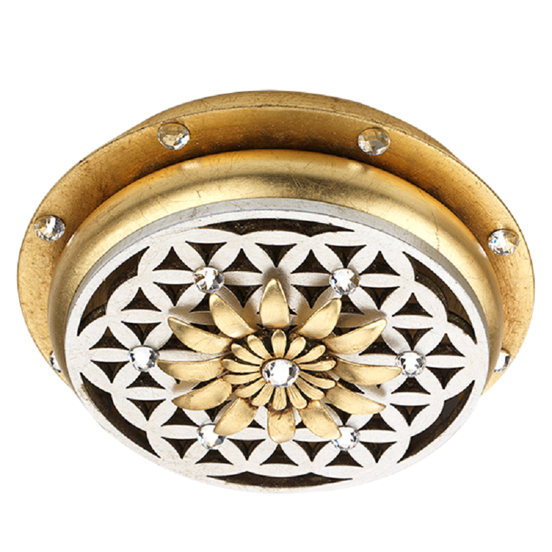 Потолочный светильник Lucienne Monique Y 51 ORO/A в современном стиле. Посеребренный деревянный цветок с кристаллами Swarovski украшает фигурную пластинку, прикрепленную к рамке основания состаренного золотого цвета. Вы можете купить светильник в нашем интернет-магазине DecoShop по лучшей цене.