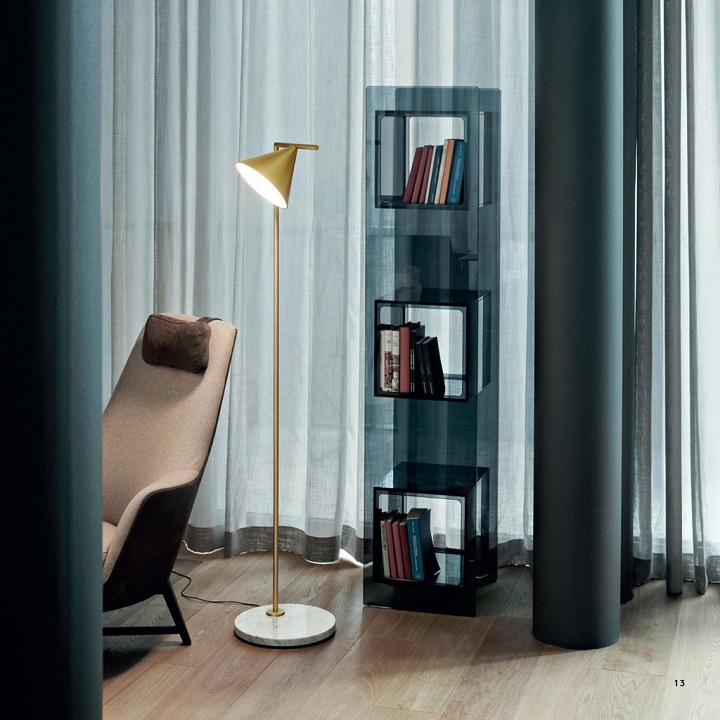 Торшер Flos Captain Flint F1530059 в современном стиле из Италии. Напольный светильник, обеспечивающий регулируемый прямой свет. Окрашенная сталь или матовая латунь, шток и вращающийся конус металла. Опаловый фоторешеточный диффузор из литого поликарбонта. База из белого каррарского или черного мрамора. Длина шнура питания 260 см, с переключателем диммера для ног, которые обеспечивают функции ВКЛ-ВЫКЛ и регулировку света 10-100%.
