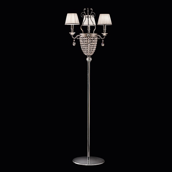 Торшер Masiero Elegantia STL3 в классическом стиле из Италии. Металлическое основание с гальваническим покрытием золотого или хромового цвета. Прозрачные хрустальные подвески завершают элегантный образ этого светильника.